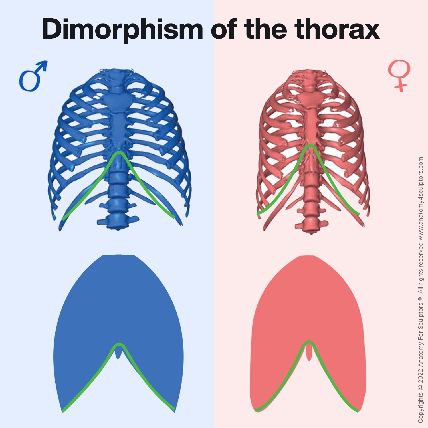 >>1201687Really more like different averages. It can vary a lot from person to person but on average, male ribcages tend to be a bit more volumous near the top than the female average, and that's also related to shoulder width.